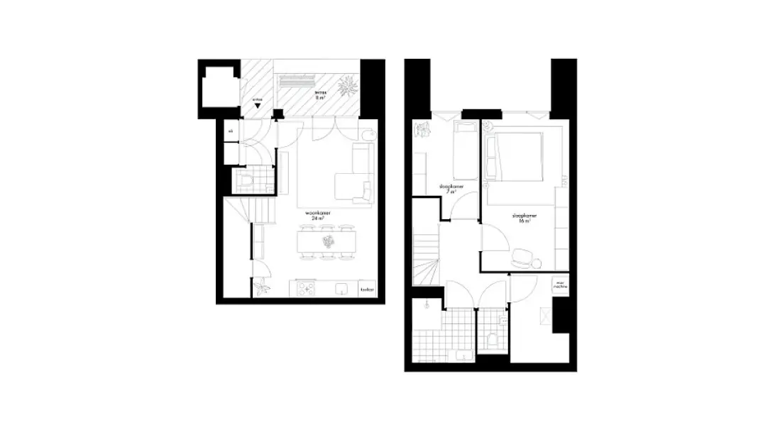 Deze ruime 3-kamerwoning van circa 74 m2 ligt op de begane grond en eerste verdieping, dus bestaat uit twee woonlagen. Je hebt een eigen entree en een terras van circa 8 m2 op het noordwesten. Het terras bereik je via de openslaande deuren vanuit de living. De living is prettig ruim en de trapkast, direct naast de open keuken, is ideaal! Via de trap kom je boven in het slaapdomein. Deze verdieping is ingedeeld met twee slaapkamers, een badkamer met een inloopdouche en wastafel en een apart toilet. De master bedroom biedt ruimte om een inloopkast te creëren. Of een werkhoek, als je regelmatig thuiswerkt. In de ruime berging kun je de wasmachine en wasdroger plaatsen en staan de technische apparaten.