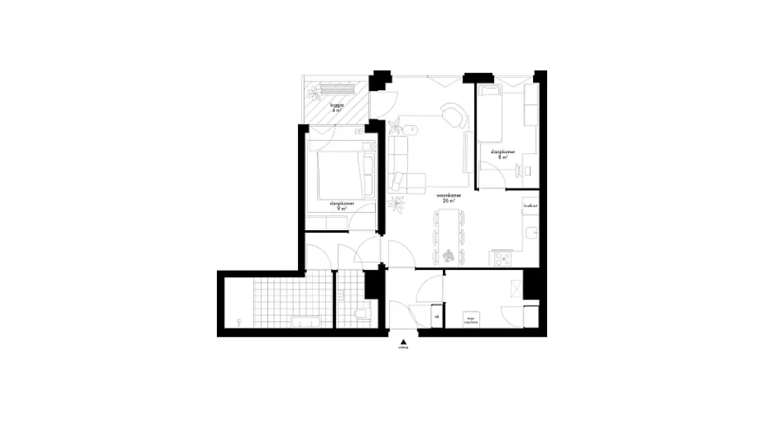 Dit 3-kamerappartement ligt op 5e verdieping en heeft een woonoppervlakte van ongeveer 69 m². Het appartement is ingedeeld met een ruime living met open hoekkeuken, twee slaapkamers, loggia, apart toilet, badkamer en een royale berging. In de berging kun je de wasmachine en wasdroger plaatsen en staan de technische apparaten. Bovendien kun je er nog van alles opbergen, zoals koffers, ski- en kerstspullen.