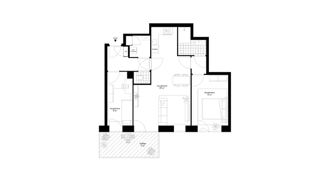Dit 3-kamerappartement ligt op 6e verdieping en heeft een woonoppervlakte van ongeveer 76 m². Bijzonder prettig is het balkon aan de royale living met open keuken met een zonligging op het zuidoosten. Verder is het appartement ingedeeld met twee slaapkamers, een apart toilet, badkamer en berging. In de berging kun je de wasmachine en wasdroger op elkaar plaatsen en staan de technische apparaten.