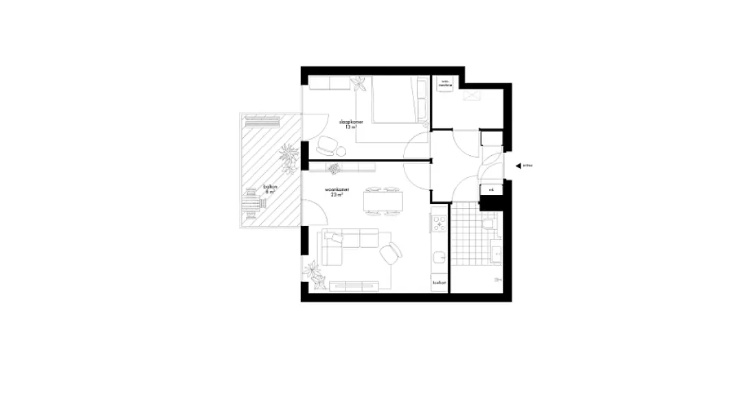 Dit 2-kamerappartement ligt op de 7e tot en met de 10e verdieping en heeft een woonoppervlakte van ongeveer 59 m². Het appartement is ingedeeld met een carré-vormige living met open keuken, een ruime slaapkamer, berging en badkamer met inloopdouche, wastafel en toilet. In de berging kun je de wasmachine en wasdroger op elkaar plaatsen en staan de technische apparaten. Bijzonder prettig is het balkon aan de living én slaapkamer, met een ideale zonligging op het zuidwesten.