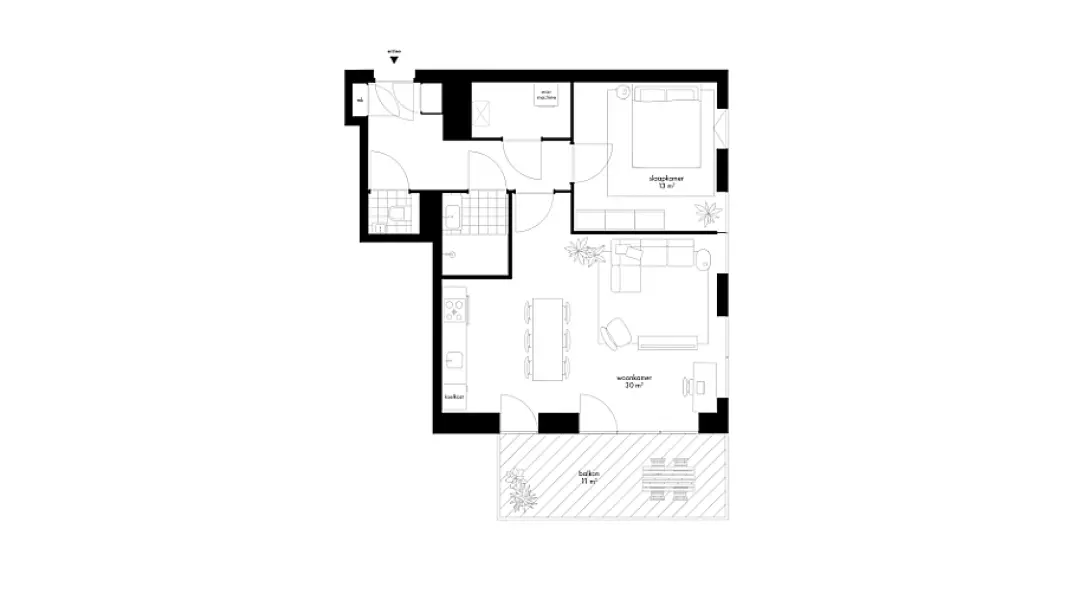 Dit ruime 2-kamerappartement ligt op de 7e tot en met de 11e verdieping en heeft een woonoppervlakte van ongeveer 70 m². Vanwege de hoekligging heeft dit appartement extra ramen wat zorgt voor een mooie lichtinval. Bijzonder prettig is het balkon aan de living met open keuken, met een zonligging op het zuidoosten. Verder is het appartement ingedeeld met een ruime slaapkamer, badkamer, een apart toilet en berging. In de berging kun je de wasmachine en wasdroger plaatsen en staan de technische apparaten.