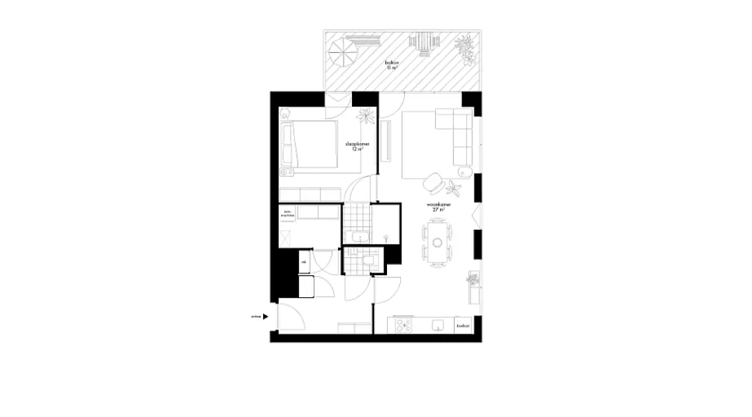 Dit 2-kamerappartement ligt op de 7e tot en met de 11e verdieping en heeft een woonoppervlakte van ongeveer 64 m². Vanwege de hoekligging heeft dit appartement extra ramen wat zorgt voor een mooie lichtinval. Bijzonder prettig is het balkon aan de living met open keuken, met een zonligging op het noordwesten. Verder is het appartement ingedeeld met een ruime slaapkamer met ensuite badkamer, een apart toilet en berging. In de berging kun je de wasmachine en wasdroger plaatsen en staan de technische apparaten.