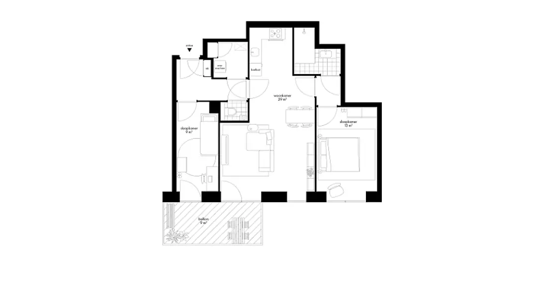 Dit 3-kamerappartement ligt op 7e tot en met de 20e verdieping en heeft een woonoppervlakte van ongeveer 76 m². Bijzonder prettig is het balkon aan de royale living met open hoekkeuken met een zonligging op het zuidoosten. Verder is het appartement ingedeeld met twee slaapkamers, een apart toilet, badkamer en berging. In de berging kun je de wasmachine en wasdroger op elkaar plaatsen en staan de technische apparaten.