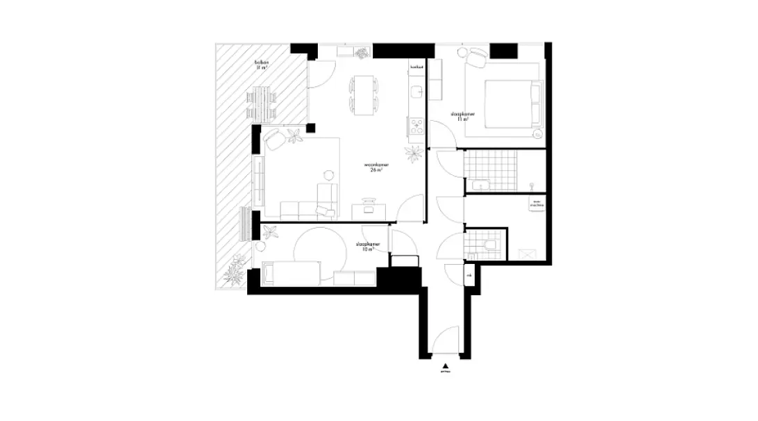 Dit ruime 3-kamerappartement ligt op 21e verdieping en heeft een woonoppervlakte van ongeveer 70 m². Vanwege de hoekligging heeft dit appartement extra ramen. Dit, én de flinke hoogte, zorgen voor een mooie lichtinval en unieke vergezichten. Wat direct in het oog springt, is de fraaie living met open keuken die grenst aan het balkon. Vanwege de verspringing van het gebouw heeft dit type een terras over de gehele breedte van de woning met een ideale zonligging op het zuidwesten. Verder is het appartement ingedeeld met twee slaapkamers, een apart toilet, een badkamer en berging. In de berging kun je de wasmachine en de wasdroger plaatsen en staan de technische apparaten.