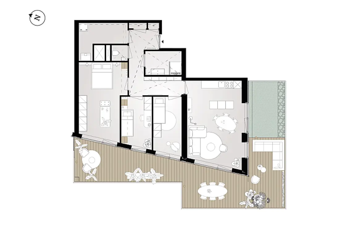 Het appartement is ingedeeld met een fraaie living met open eilandkeuken, drie slaapkamers, een badkamer en royale berging. Vanwege de hoekligging heeft dit appartement extra ramen wat zorgt voor een mooie lichtinval én maximaal uitzicht op de fraaie nieuwe stadswijk en de A’DAM Toren. Optioneel kun je kiezen voor een tweede badkamer direct aan de masterbedroom.