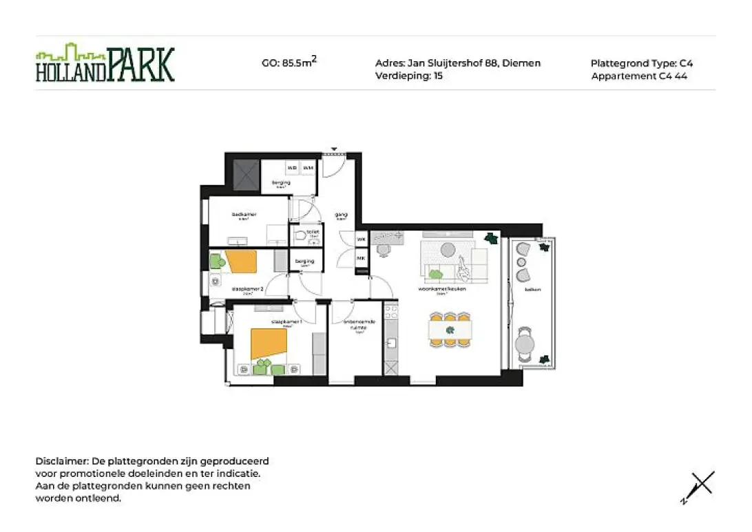 Dit appartement op de vijftiende verdieping heeft een woonoppervlakte van 85m² en biedt een prachtig uitzicht vanaf het balkon richting de Johan Cruijff Arena en de rest van Holland Park. De royale woonkamer met open keuken van 31m² is perfect voor zowel ontspanning als entertainment. Het appartement heeft twee slaapkamers (11m² en 6m²), een separaat toilet, een moderne badkamer, en voldoende bergruimte met een berging. Het appartement heeft een hoog plafond voor een extra ruime beleving.